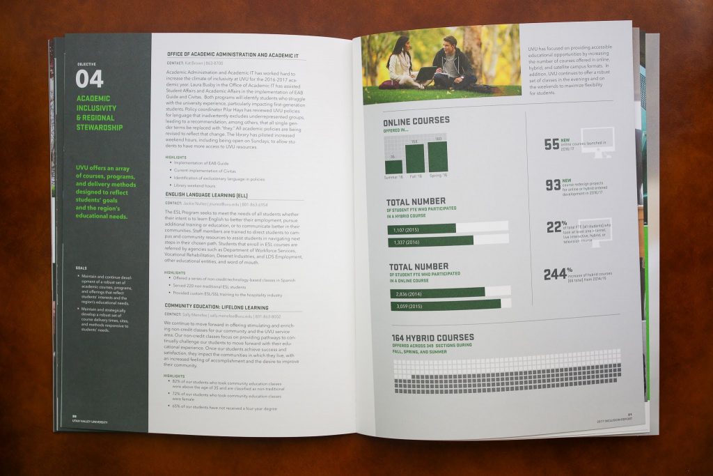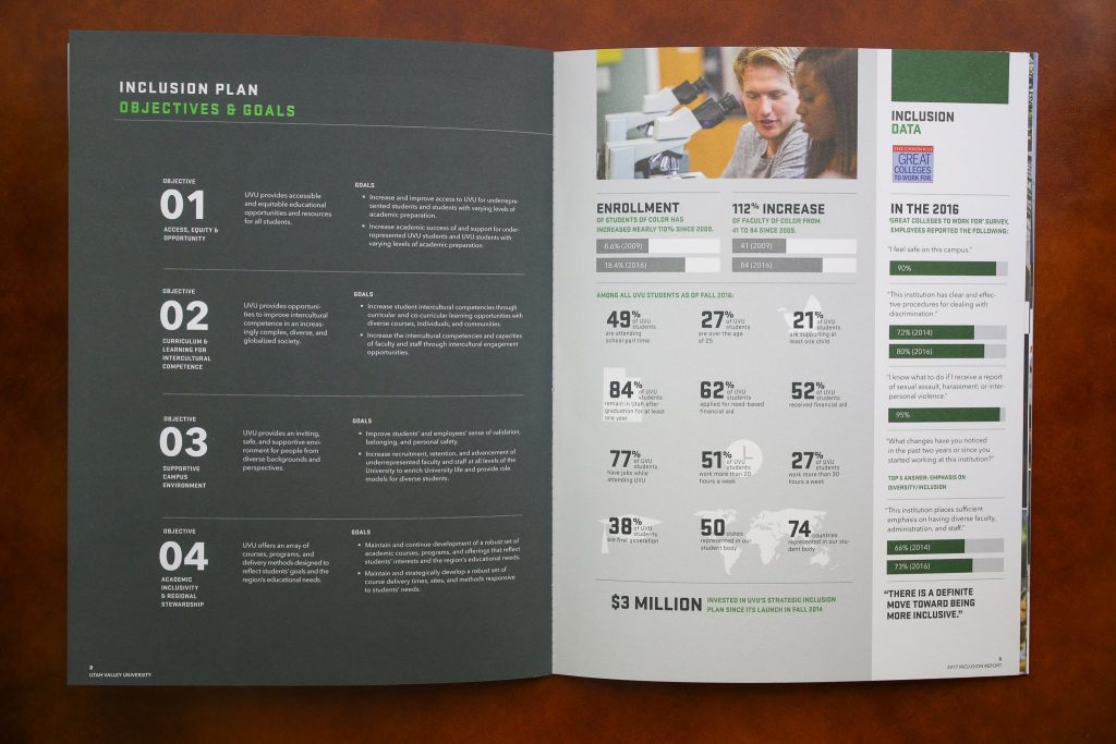 UVU strives to excel in inclusion, boasting an open enrollment policy and affordable tuition, it is their mission to reach out and retain first-generation students and minority groups. This report details what events and programs are being employed to help these students feel empowered.